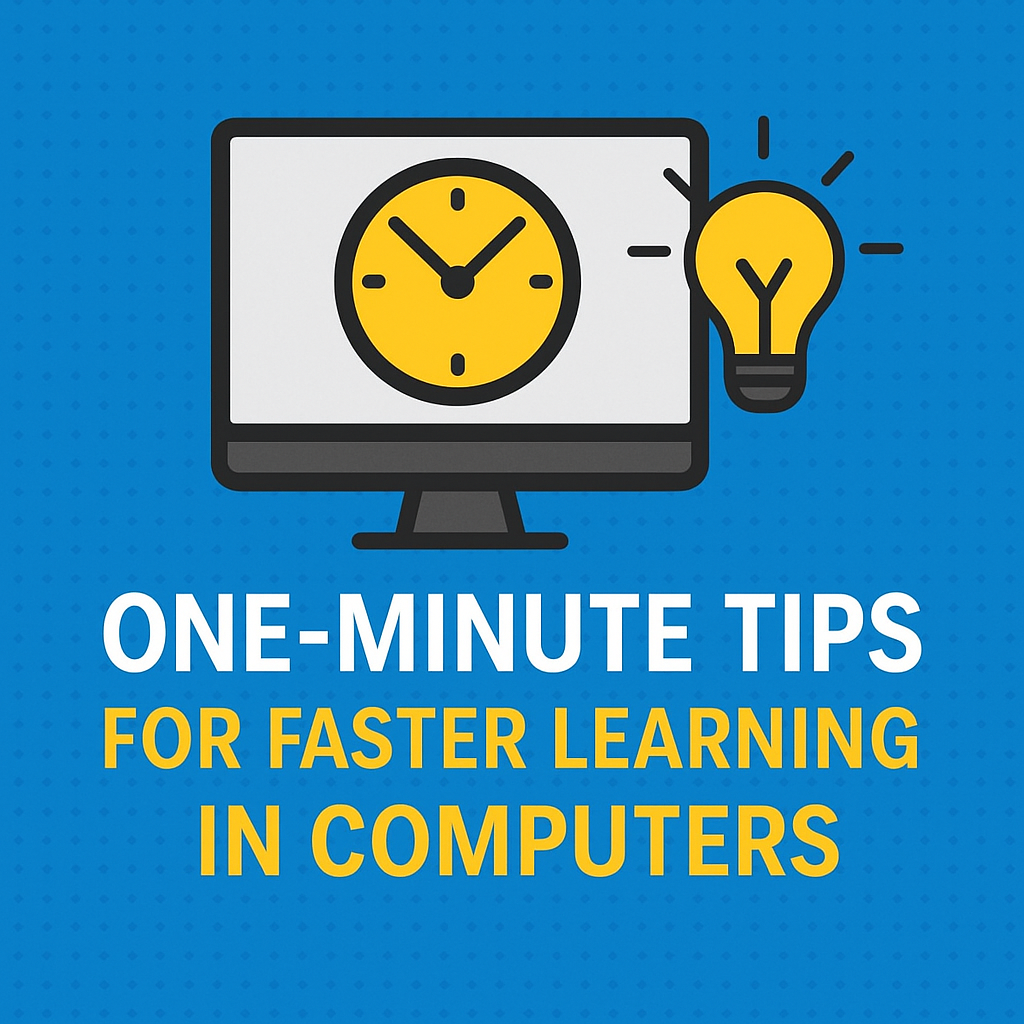 One-Minute Tips for Faster Learning in Computers Learning computers does not mean sitting for hours with heavy books or